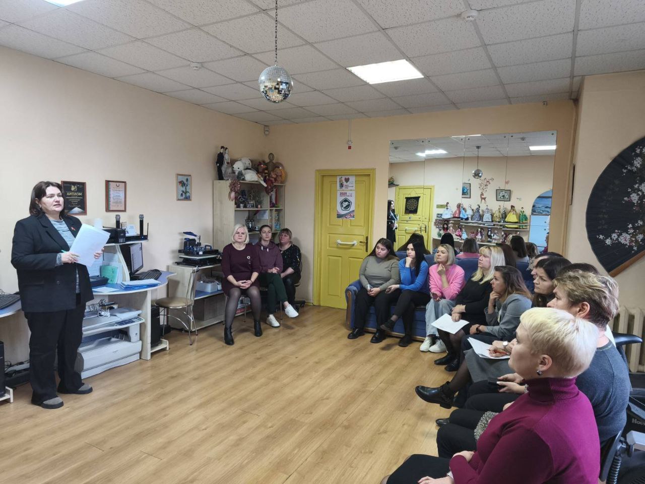 На тему «Семейное насилие— как предотвратить» с коллективом поговорила специалист по социальной работе Центра социального обслуживания населения Приходько Елена Владимировна.