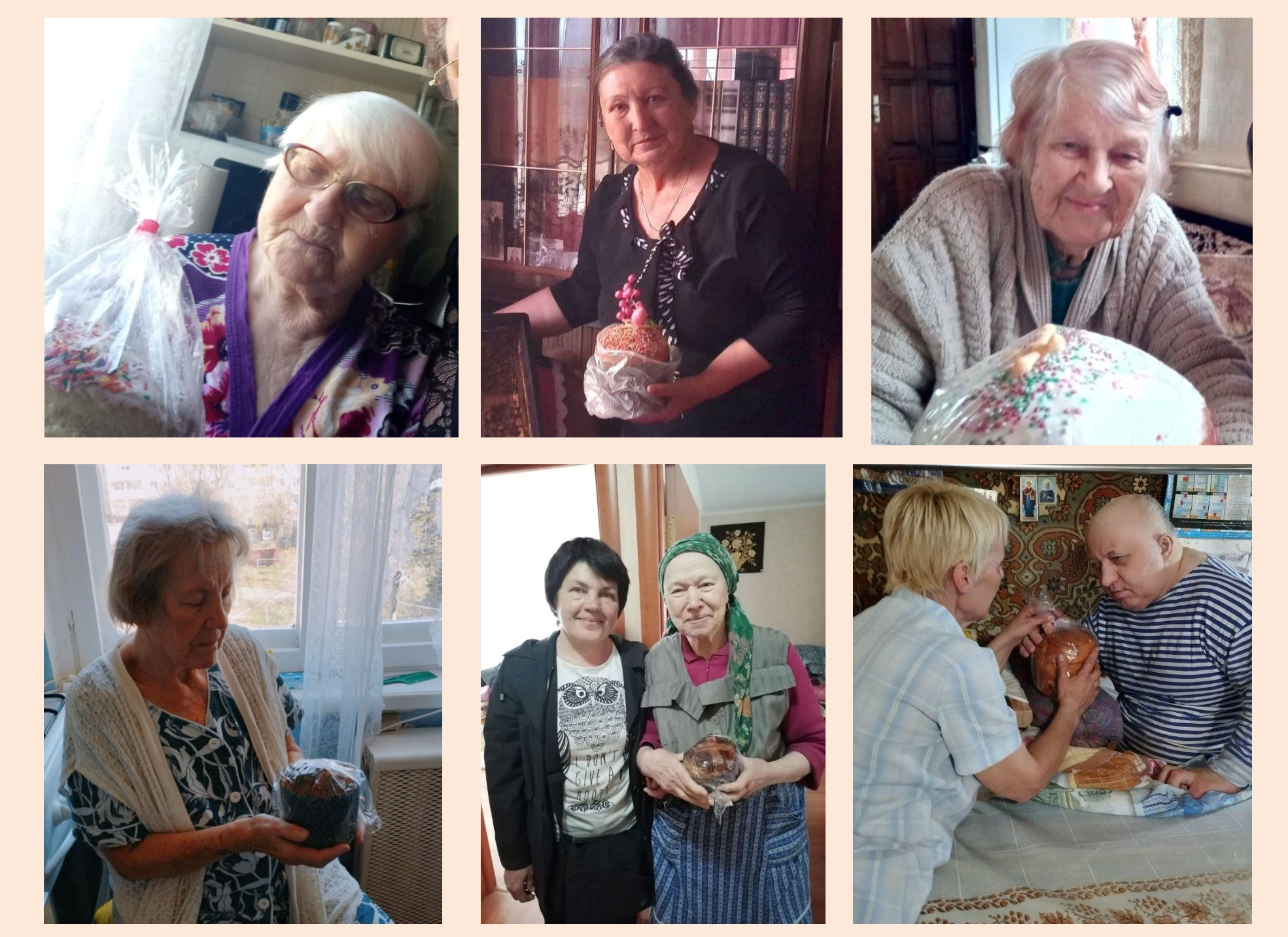 В преддверии праздника Светлой Пасхи в рамках акции " Кулич в каждый дом" при поддержке ОАО "Гомельдрева", РОО "Белая Русь", учреждений образований учреждение "Центр социального обслуживания населения Новобелицкого района г.Гомеля" посетили одиноких пожилых граждан с поздравлениями и вручением главного символа праздника - Пасхального кулича.
